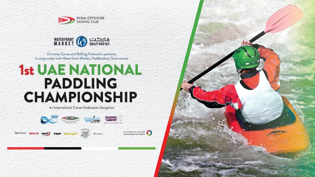 We are excited to announce the 1st UAE National Paddling Championship! Date: 10th of December 2023.Distances: 200m; 500m; 8 km and 15 kmBoat Categories: Open Kayak; Surfski; SUPEntry Fee: 40 AED Categories: • Girls and Boys (under 13)• Under 18 women/man (age 14-18)• Senior women/man (above 18) Register here (https://www.webscorer.com/ecrf)