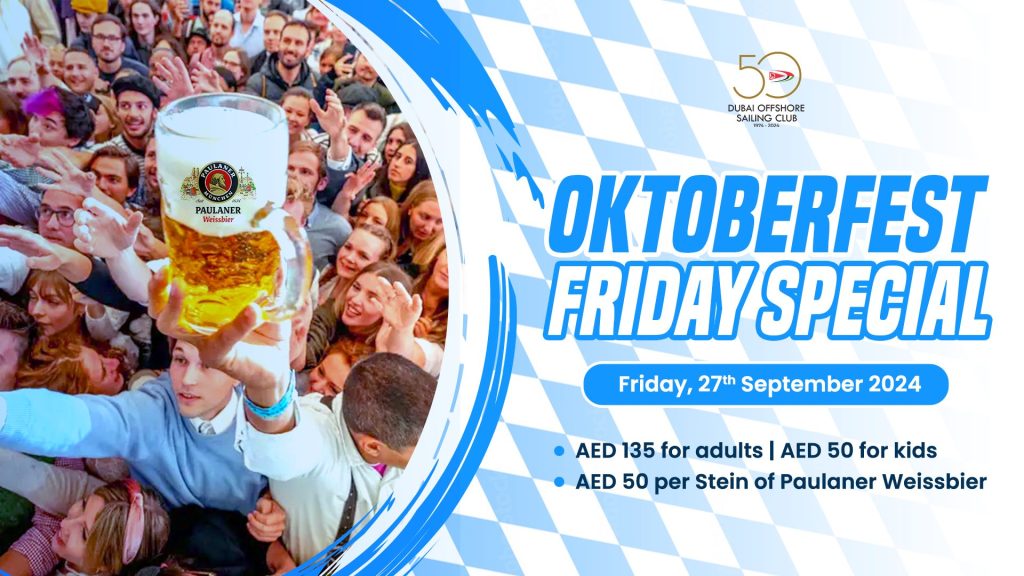 Oktoberfest Friday SpecialFriday, 27th September 2024AED 135 for adults | AED 50 for kidsAED 50 per Stein of Paulaner Weissbier
