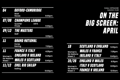 We’re playing all the events you want to watch live, in Tentola & the Clubhouse! Saturday 4 April: Oxford-Cambridge Boat Races