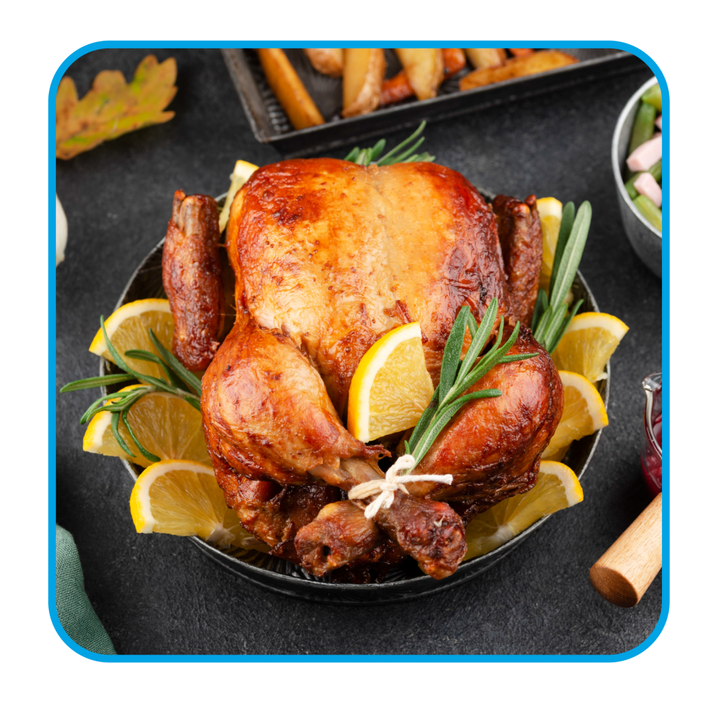 Whole chicken roasted with rosemary, garlic, and olive oil