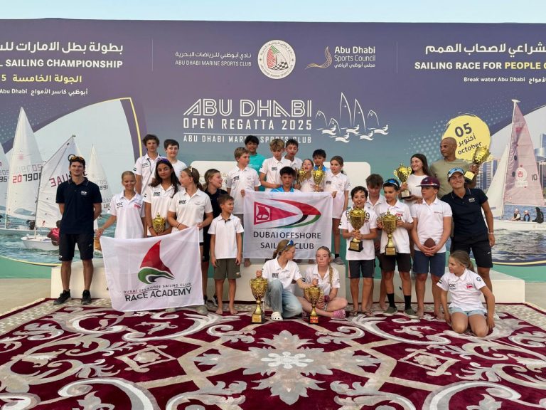 The UAE Sailing Nationals in Abu Dhabi delivered another weekend of sweaty and shifting conditions, and the DOSC sailors rose to the occasion with one of their strongest collective showings to date. In the ILCA 4 fleet, which saw 27 boats on the starting line, Fynley Britton led the charge with impressive consistency across the series and secured a well-earned fifth place overall.