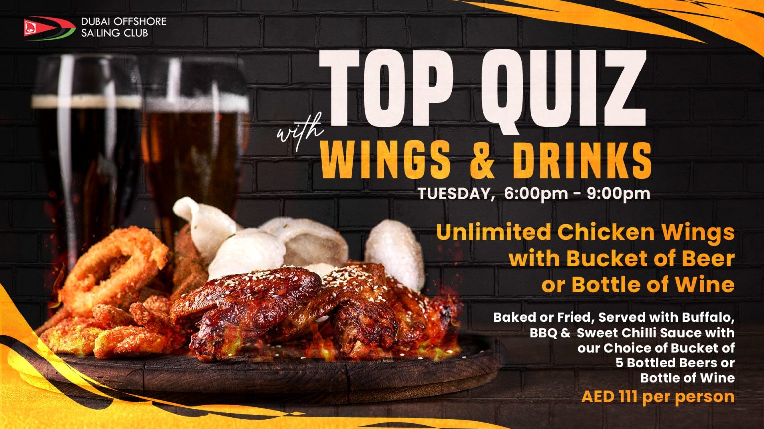 Join us every Tuesday for ‘Top Quiz with Wings & Beer!’ at The Clubhouse.